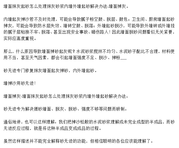 水泥墙面掉沙灰怎么办,墙面脱沙用砂无迹